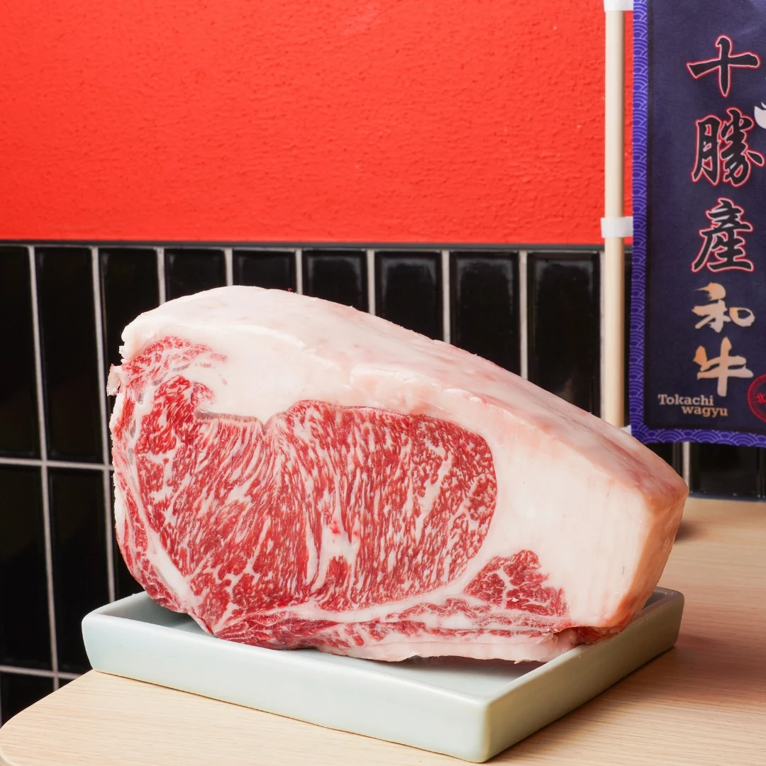 Premium Wagyu, Direct from Japan – All beef is A4 Tokachi Wagyu, with options like lean, chuck, and rib eye, served in regular or large portions.